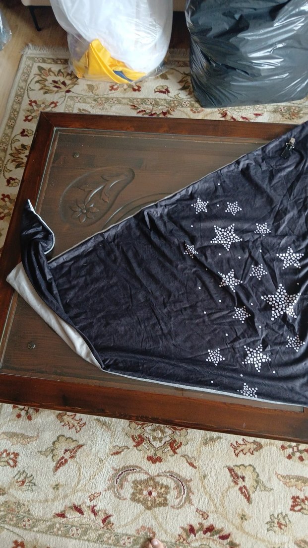 Yumuşak sentetik kumaştan yapılmış, nakışlı yıldız desenli koyu siyah çocuk battaniyesi. Üzerinde 'H' harfi bulunur. ️
