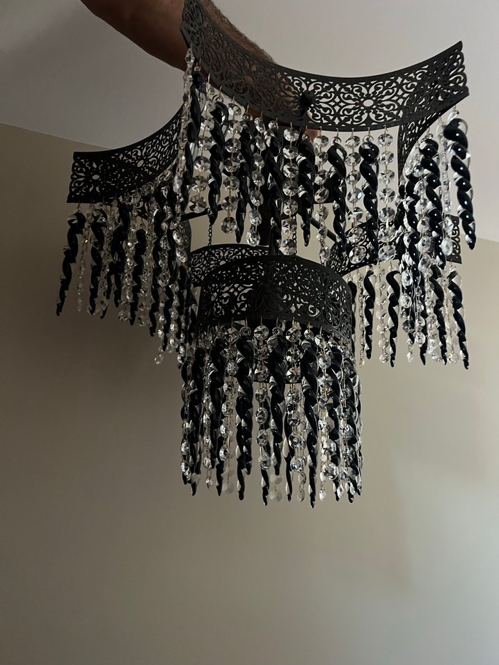Sevinç marka, cam taşlı avize, hiç kurulmadı, sıfırdır. Alınan yere uygun olmadığı netleşince kutuya konup saklandı.