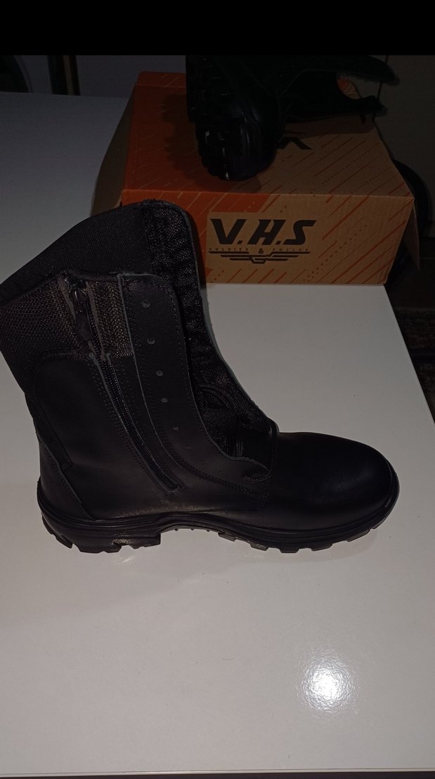 Sıfır, Kauçuk malzemeden yapılmış, fermuarlı yan detaylı, koyu kamuflaj desenli siyah biker bot. V.H.S logosu bulunur. 43 Numara.
