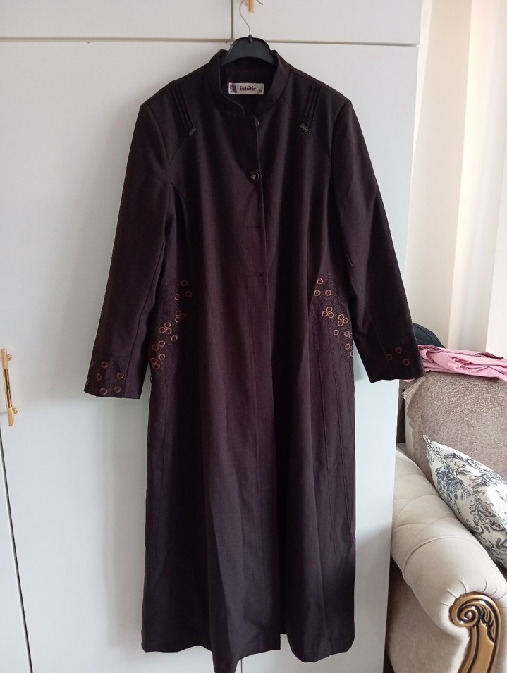 sıfır uzun boy 46 48 beden Tok kumaş yanları nakışlı çok şık pardesü