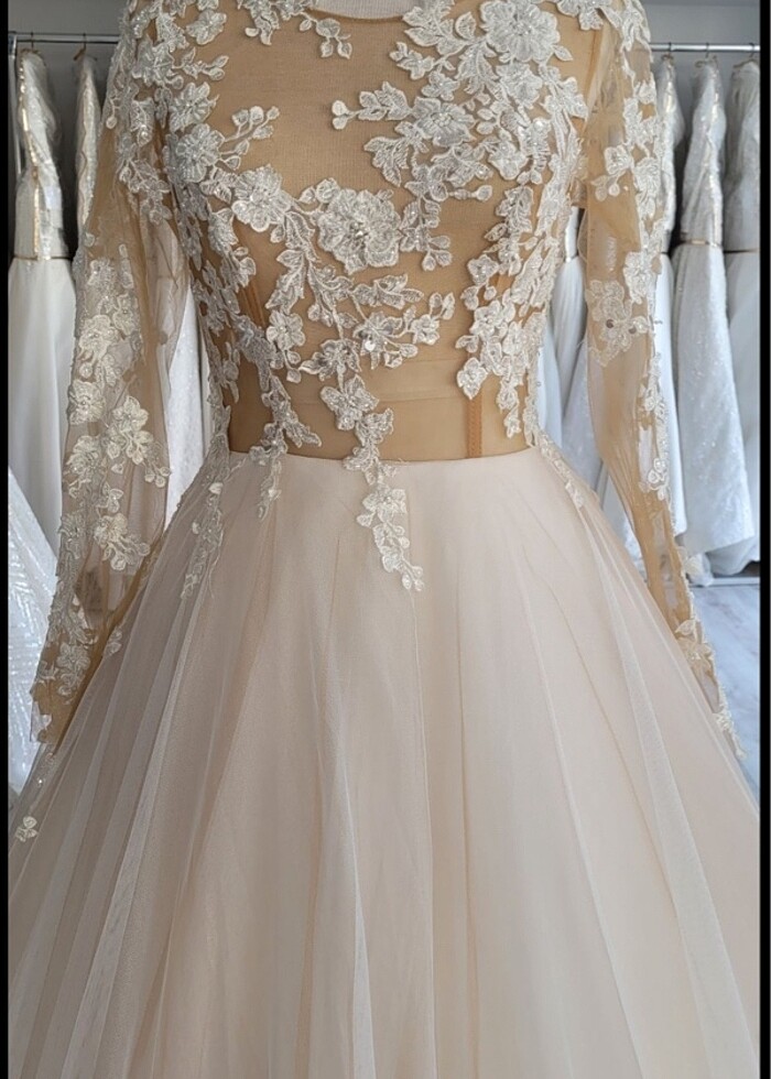 Hiç giyilmedi gelinlikçide dikildi. Sadece kolları kol kalınlığına uygun şekilde dikilecek başka bir problemi yok 36-40 beden arası uygun olur arkası ipli olduğu için