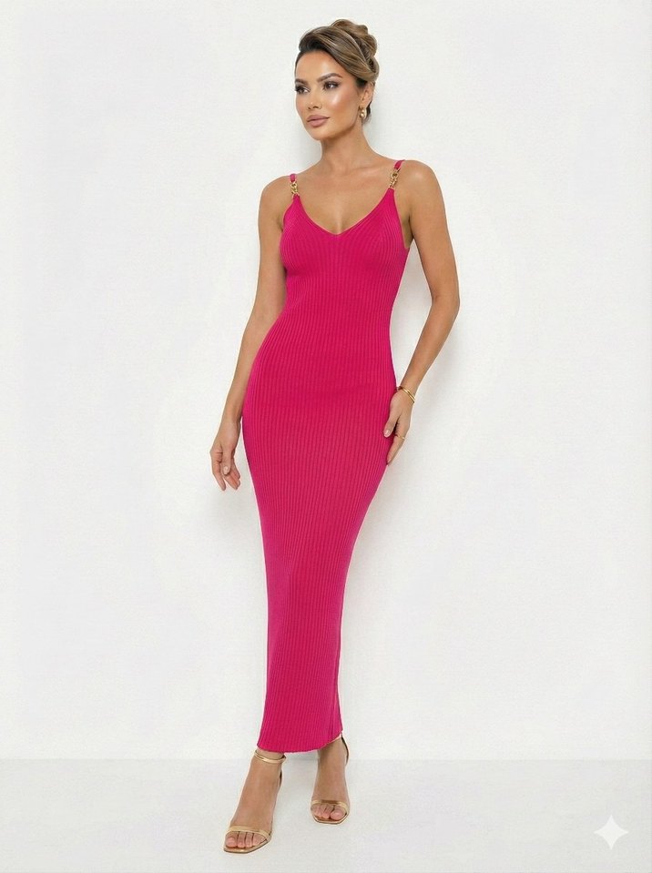 İnce askılı, V yakalı pembe uzun elbise, yumuşak sentetik kumaştan yapılmıştır. Zarif tasarımıyla romantik akşamlar için şık bir seçim. çok zariftir. tam boy değildir. duruş bu şekildedir. boyu midi boydur. çok şık rengi duruşu harika. vücudu saran bir elbise. m bedene de olur. sarı rengi de mevcuttur. ilandadır.