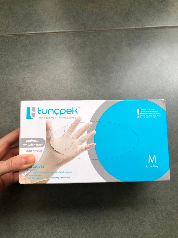 Vinil eldiven sıfır ürün m beden s beden için de olur çok büyük değildir