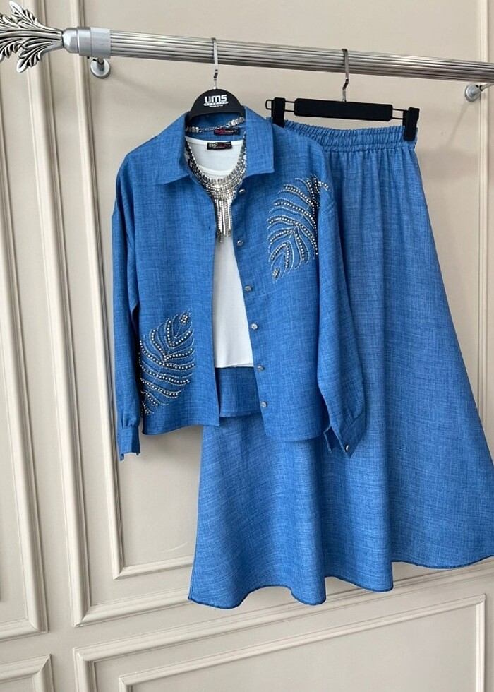 Açık lacivert ikili keten takım, hiç giyilmedi beden küçük geldiği için satılık. M/L uyumlu