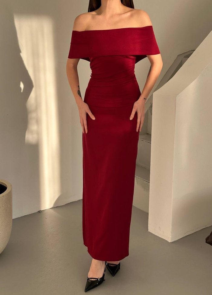 Ürünlerim sıfır etiketli ürünlerdir Ürünün sadece medium bedeni kaldı Drapeli, uzun ve vücuda oturan bordo abiye elbise, parlak dokusu ve kayık yaka tasarımıyla romantik akşamlar için uygundur. Ürün markası kissboom