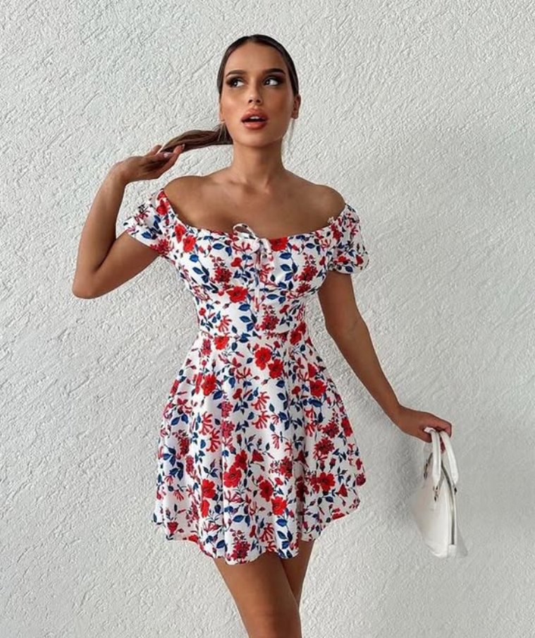 Ürünlerim sıfır etiketli ürünlerdir Ürün markası Chago Bu ürünün 2 adet Small ve 2 adet medium bedeni vardır Çiçek desenli, beyaz mini elbise, straplez yaka ve kısa kollu, vücuda oturan kesimde, fırfır detaylıdır.