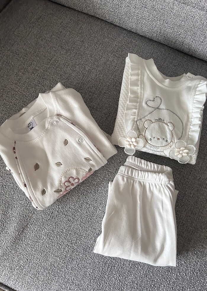 Bi takım alt üst ve bir ayaklı tulum 6-9 aylık ihtiyaç fazlası çok kaliteliler