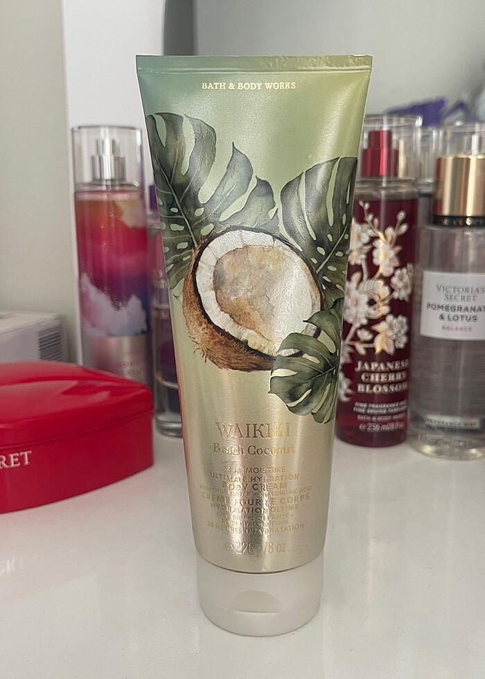 Bath And Body Works Waikiki Beach Coconut Yoğun Nemlendiricili Vücut Kremi. Yanlışlıkla sepetimde iki adet eklemişim o yüzden satıyorum. Hindistan cevizli hafif tropikal bir koku. Hiç kullanılmadı. Full doludur. 226 gr. Nasıl kokuyor: Tatlı, güneşli bir plaj tatili. Koku notaları: Tropikal beyaz hindistan cevizi, tuzlu su esintileri ve güneşte ağartılmış ormanlar.