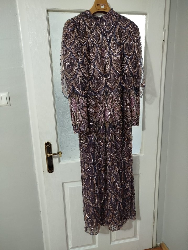 SIFIR YENİ Mor İşlemeli Uzun Abiye Elbise 44 beden