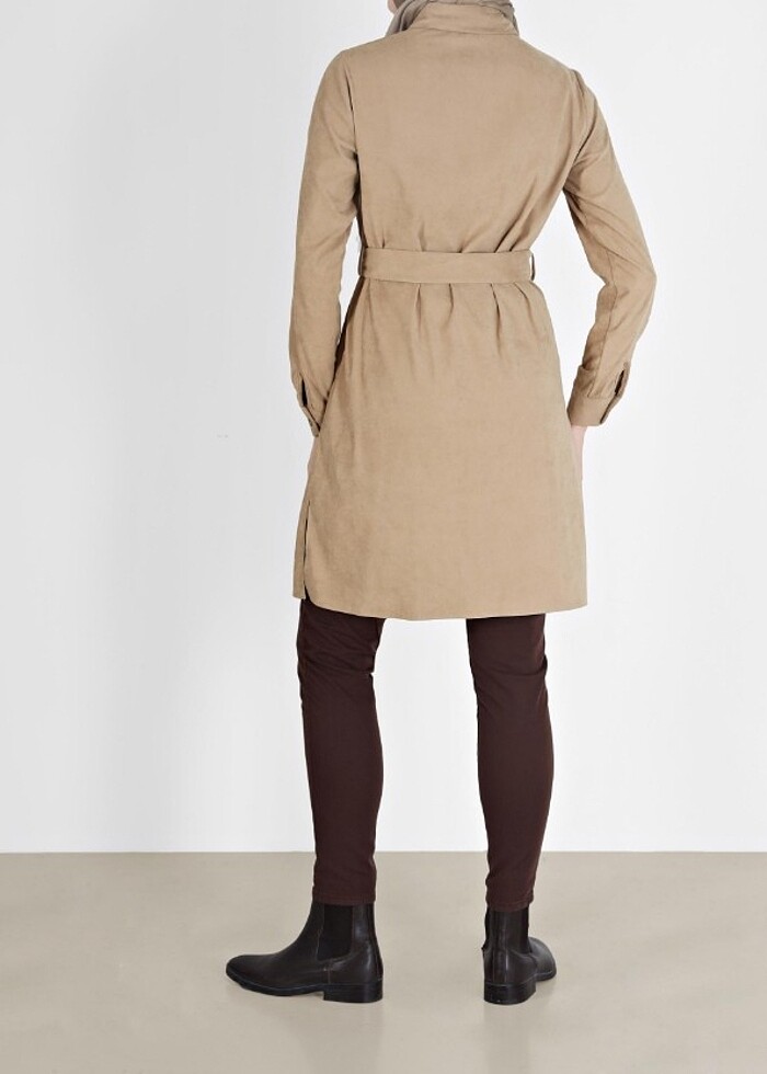 Sıfır Yeni Trençkot Jean ceket Bej/Badem L İhtiyaç fazlası Tek fiyat