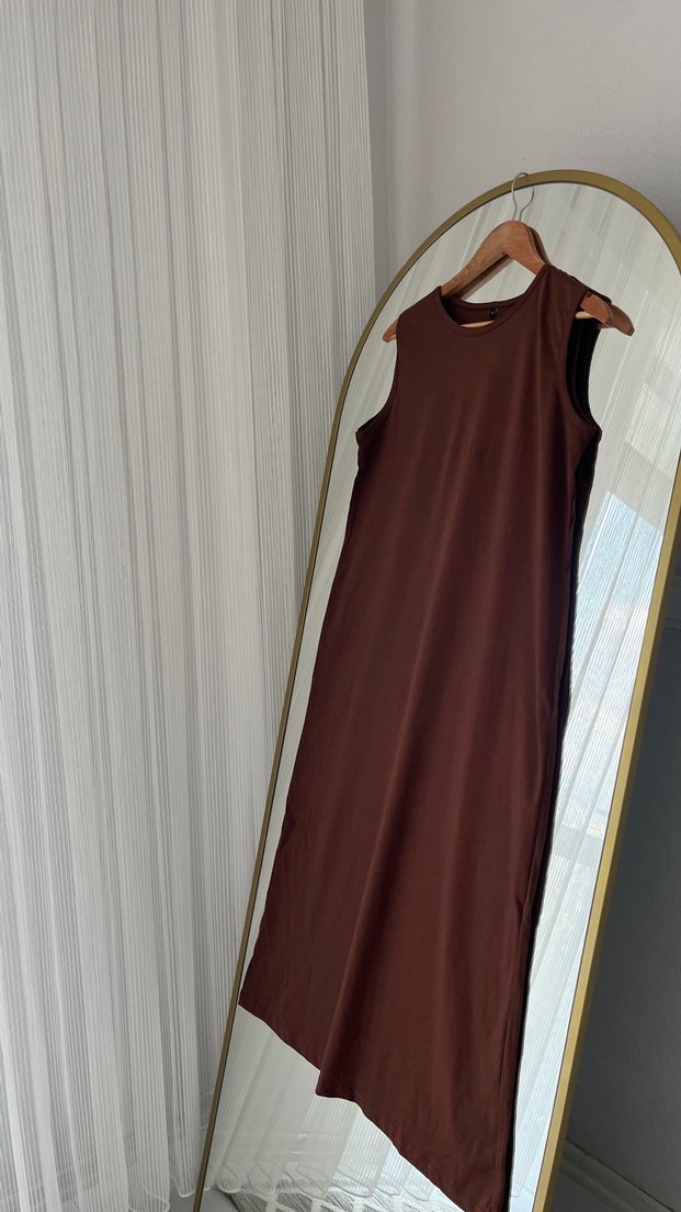 Kahverengi,kolsuz uzun elbise, rahat kesimli, minimalist tarz için uygundur. İster tesettürlüler üzerine hırka giyip giyebilir tesettürlü olmayanlar içinde hafif kısa modellerimiz mevcuttur renk beden sorunuz .