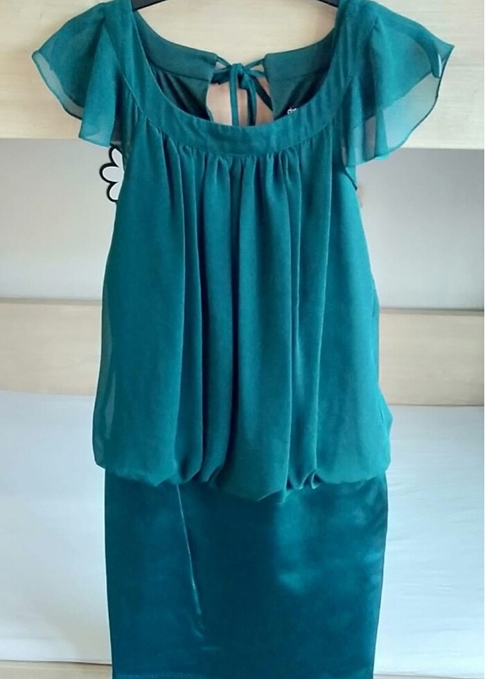 38 beden yeşil şifon detaylı abiye