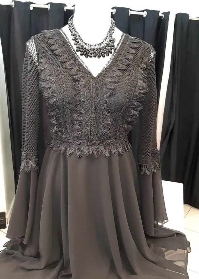 Şifon akşam elbise kararmaz taki hediyeli