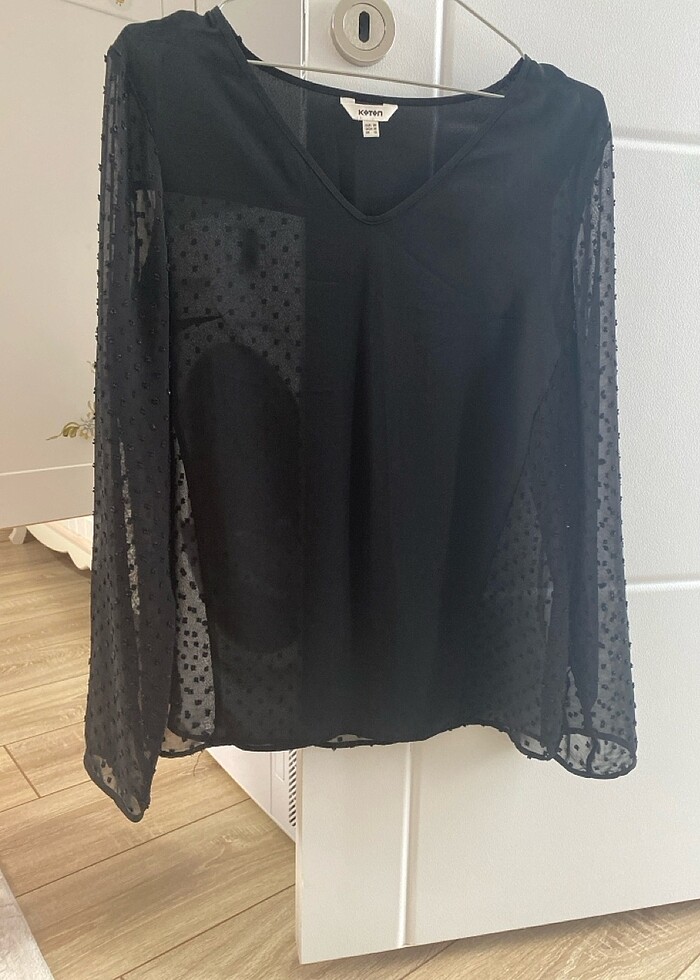 İnce tül gibi şifon bluz hafif tülermesi var
