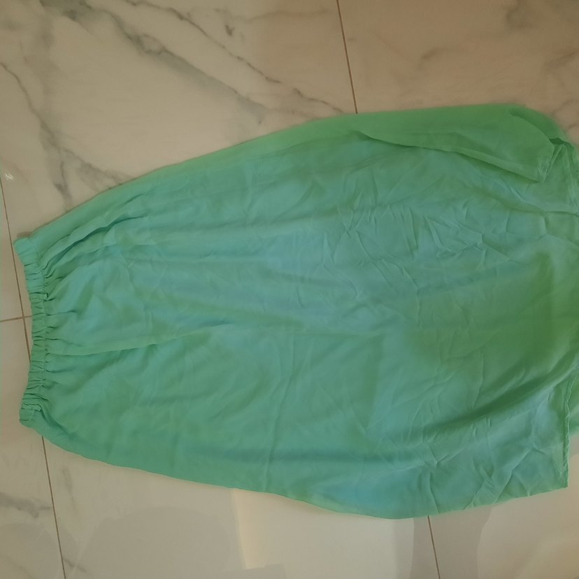 Pastel yeşil renkte, desensiz sade bir görünüme sahiptir. ️şifon etektir.