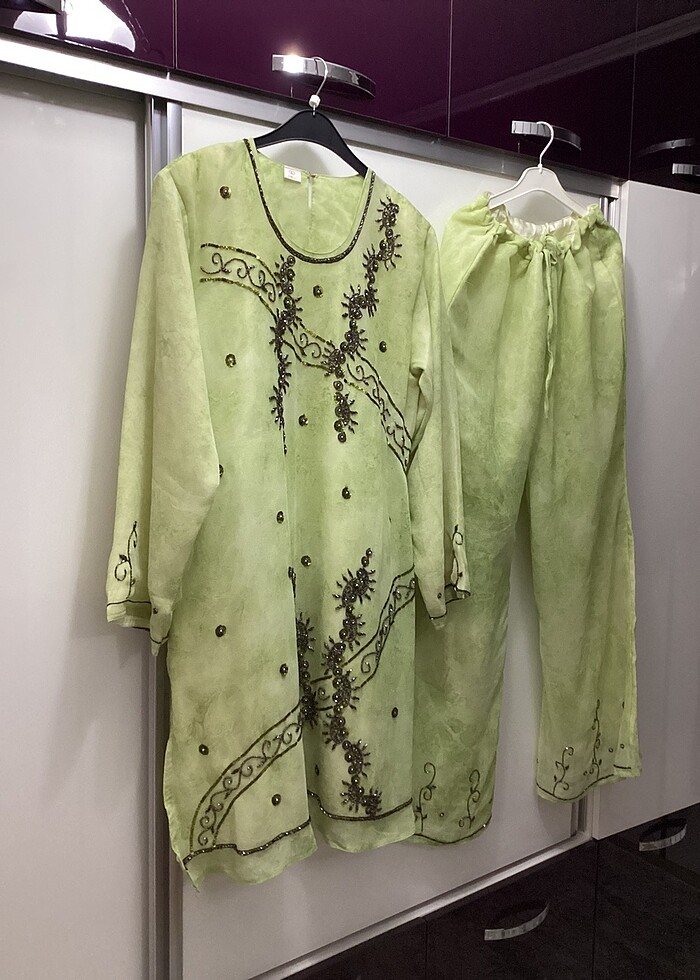 Yurtdışından gelmiştir hiç kullanılmadı el işlemesidir L beden yazıyor ama geniş kesimdir