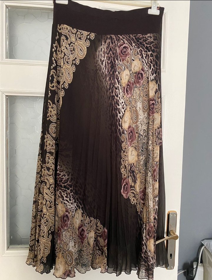 Şifon kahve rengi desenlik etek