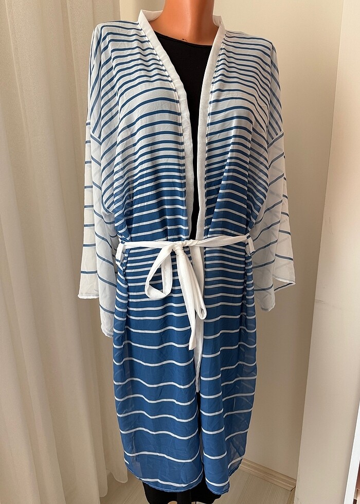 Şifon pareo plajlık kimono kaftan abaya plaj kimonosu şifon mavi