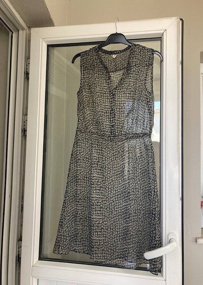 Şifon siyah üstüne kemik çiçekli elbise