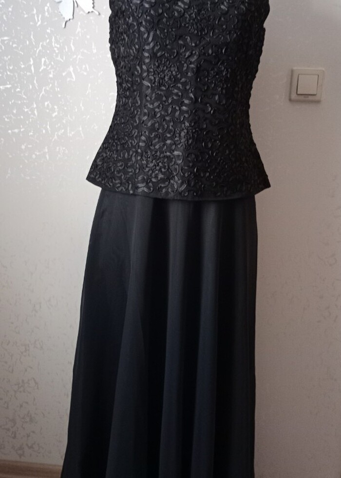 Şifon bluz ve etek takım. 1 kez takım olarak 1 kez de etek farklı bir üstle kullanıldı büstiyer iki kol arası 47 cm, boyu 53 cm etek bel 38 cm, boyu 100 cm