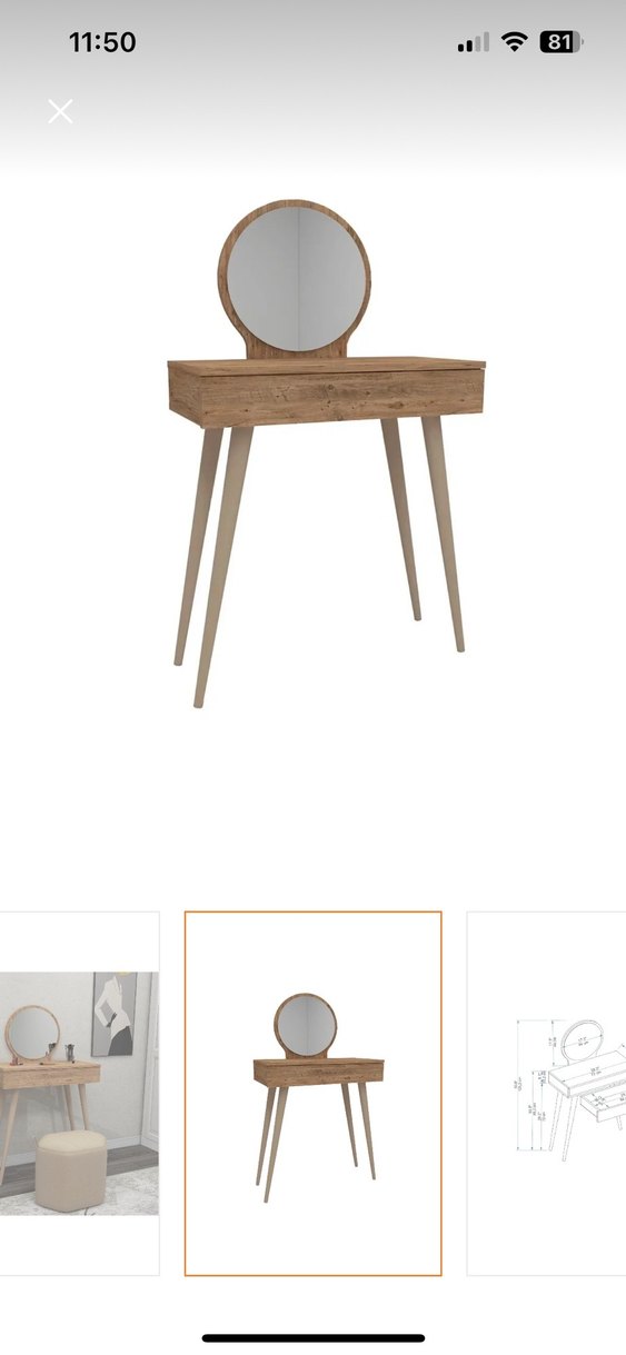 Yuvarlak aynalı,açılabilir çekmeceli ayaklarıyla şık ve kullanışlı