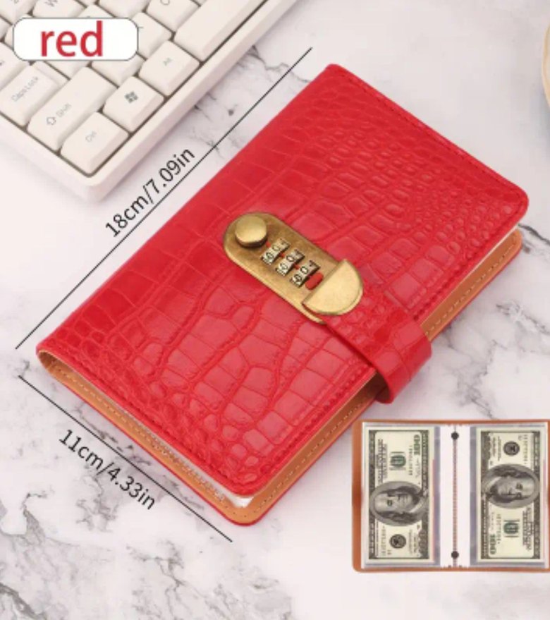 şifreli Kırmızı Deri Kadın para döviz biriktirme cuzdani
