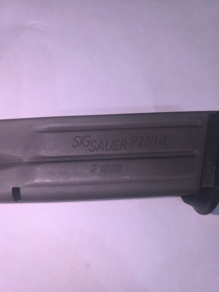 Sıg Sauer P229 (USA) orjinal sarjorudur silahla birlikte üç adet gelmişti.Silahi sattım bu şarjör kalmıştı.Kesinlikle Fabirkasyon silah kutusundan çıkan orijinaldir.Sifirlari piyasada 250 300 dolar civarıdir meggarlar bile 100 dolar civarıdir.İade Garantilidir.İstenildigi yere gösterilebilir.