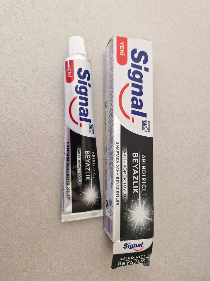 Signal diş macunu, aktif kömür tozlu formülü ile beyazlık ve arındırıcı etki sağlar. Yeni formül ile temiz dişler için uygundur.