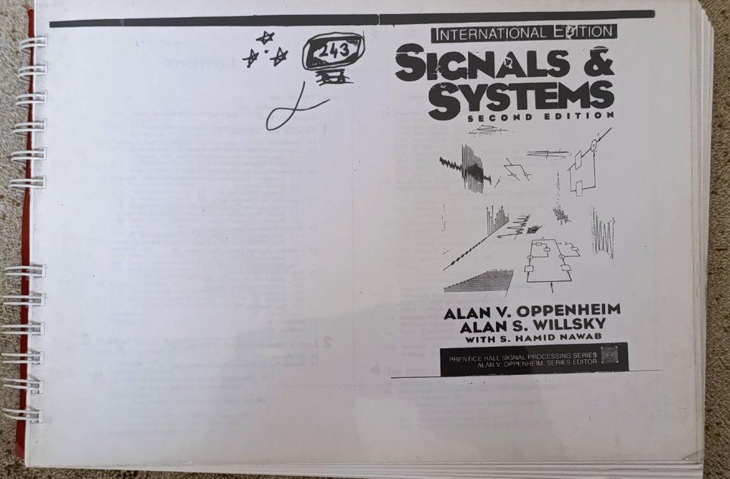 Alan V. Oppenheim ve Alan S. Willsky'nin 'International edition Signal and Systems' adlı kitabı, sinyal işleme diyagramları ve teknik içerikler sunar.