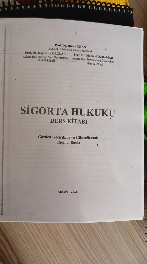 2021 Ankara basımı, gözden geçirilmiş ve güncellenmiş beşinci baskı Sigorta Hukuku ders kitabı. Yazarlar Prof. Dr. Rza Ayhan, Prof. Dr. Hayrettin Çağlar, Prof. Dr. Mehmet Özdamar.