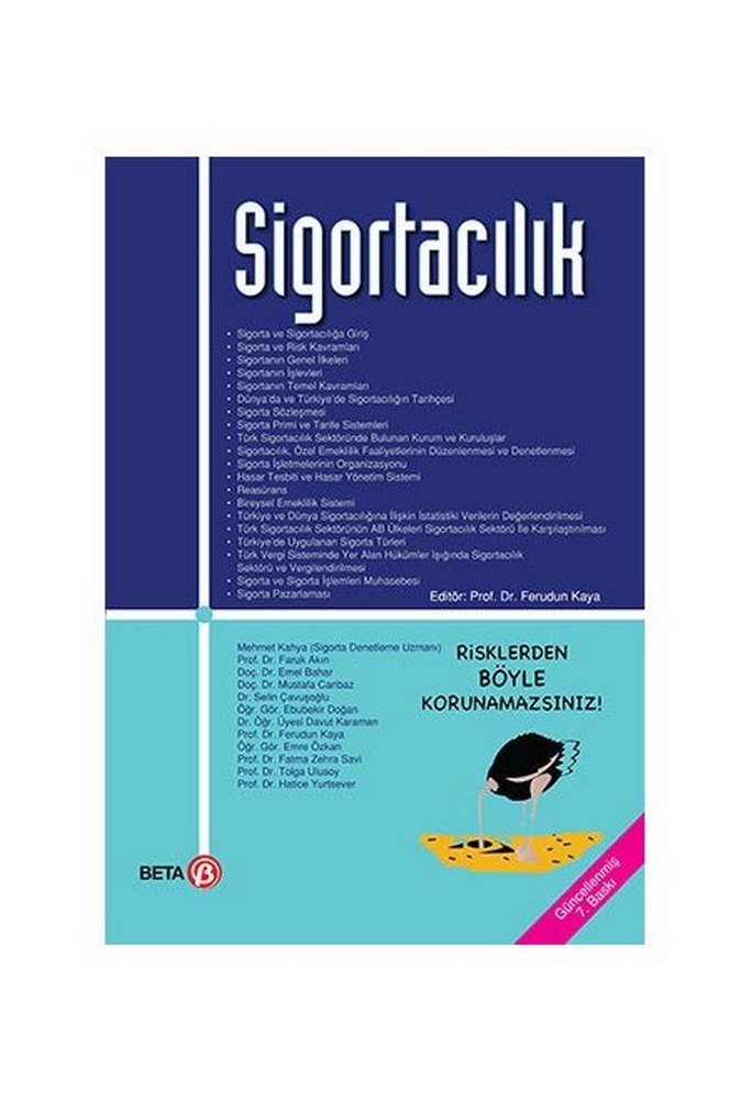 Sigorta ve sigortacılık işlemleri, riskler, mevzuatlar ve sistemler hakkında detaylı bilgiler sunan bir kitap. Risklerden korunma konusunu işler.