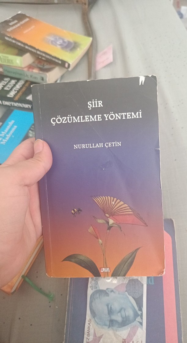 Nurullah Çetin'in "Şiir Çözümleme Yöntemi" kitabı, şiir analiz tekniklerini ele alıyor. Bitki ve arı çizimi bulunan sade kapak tasarımıyla.