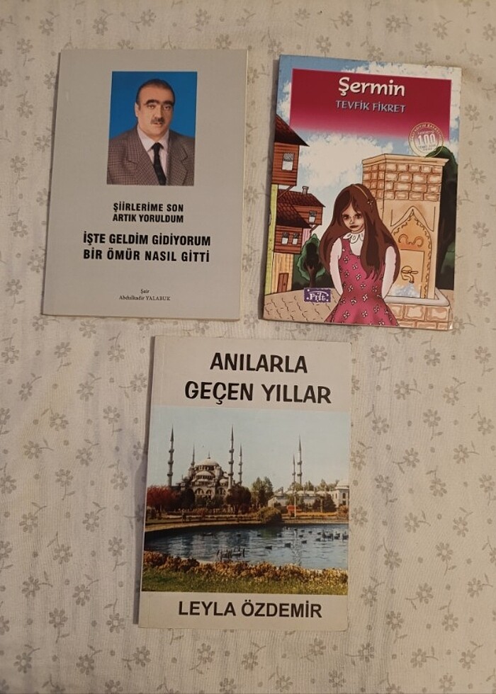 Ürünler ikinci eldir, toplam fiyatıdır, yırtık çizik yoktur. İşte Geldim Gidiyorum Bir Ömür Nasıl Gitti - Abdulkadir Yalabuk, 64 sayfa. Anılarla Geçen Yıllar - Leyla Özdemir, 128 sayfa. Şermin - Tevfik Fikret, 80 sayfa.