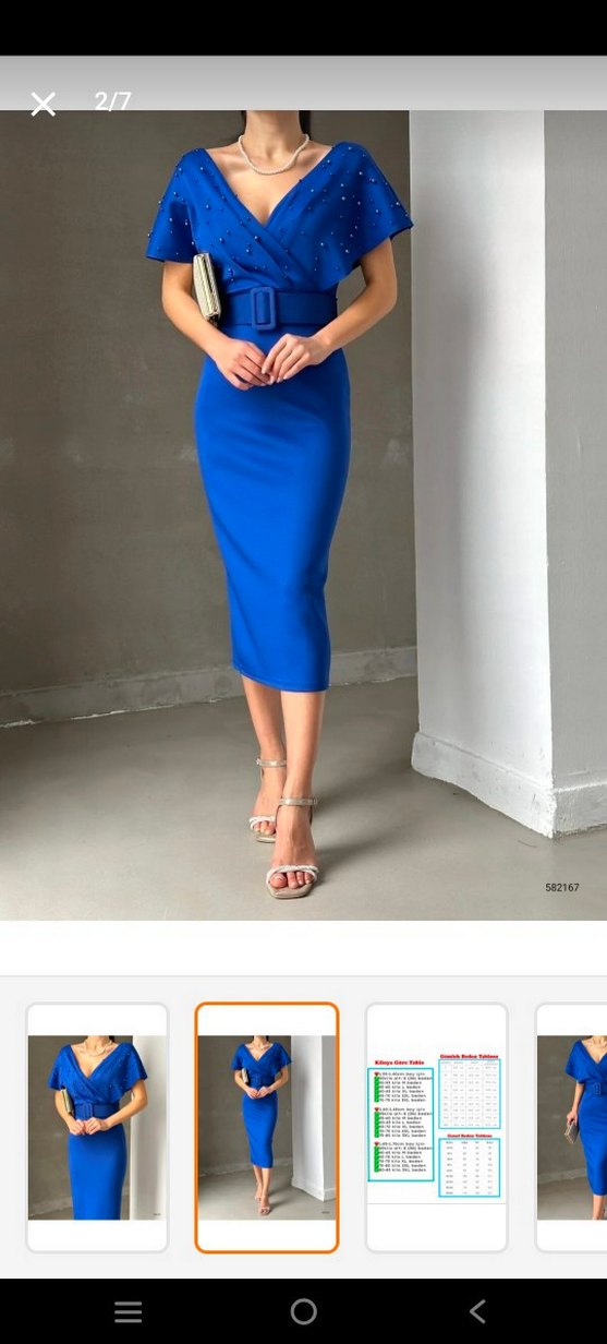 saxs mavisi v yaka boncuklu şık bir abiyedir. boncuklu kısımda fotoğrafta göründüğü gibi hafif iğne batması gibi deformeler var onun haricinde sorunsuz o yüzden uyguna veriyorum .