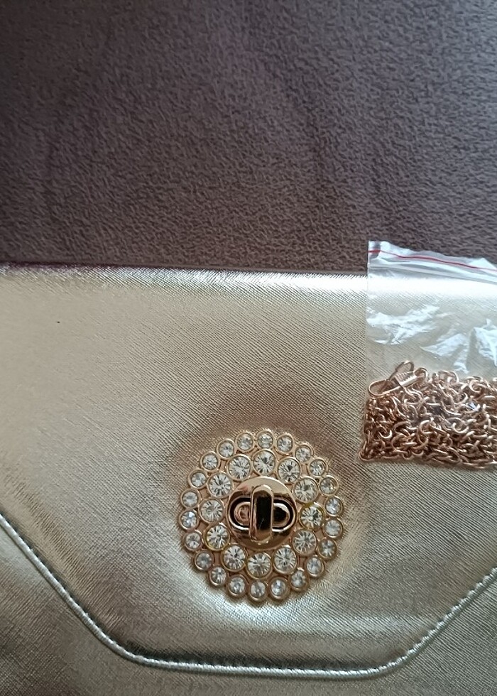 Hiç kullanılmamıştır.Çok kaliteli abiye çanta.Valizde eşyalardan kaynaklı hafif basılma olmuştur.Kullanmaya başladığınız da düzelecektir.Hiçbir sorunu yoktur. Şık zincir uzun askısı mevcuttur.