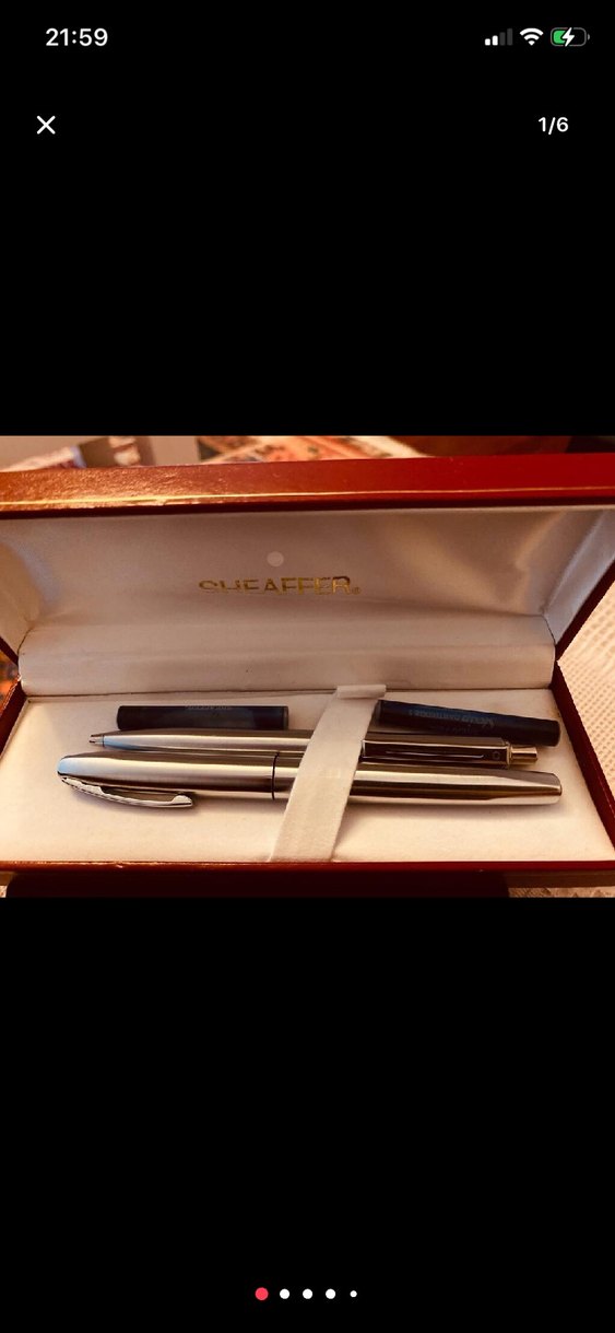 Sheaffer marka, parlak altın renkli tükenmez kalem ve kapaklı kalemden oluşan set, şık bir kutuda sunulmaktadır. ✒️
