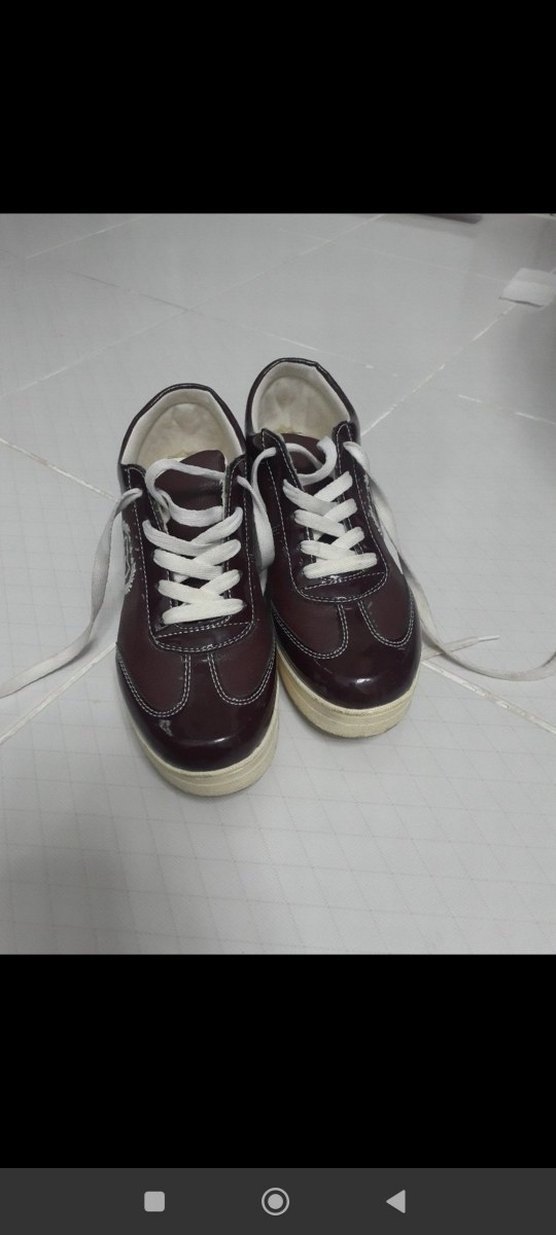 38 numara, bordo/mürdüm tonlarında gizli topuklu spor ayakkabı. Parlak deri görünümlüdür, bağcıklı modeldir. Az kullanılmış, defosuz ve rahat bir ayakkabıdır. Görüntüsü fotoğraflardaki gibidir.