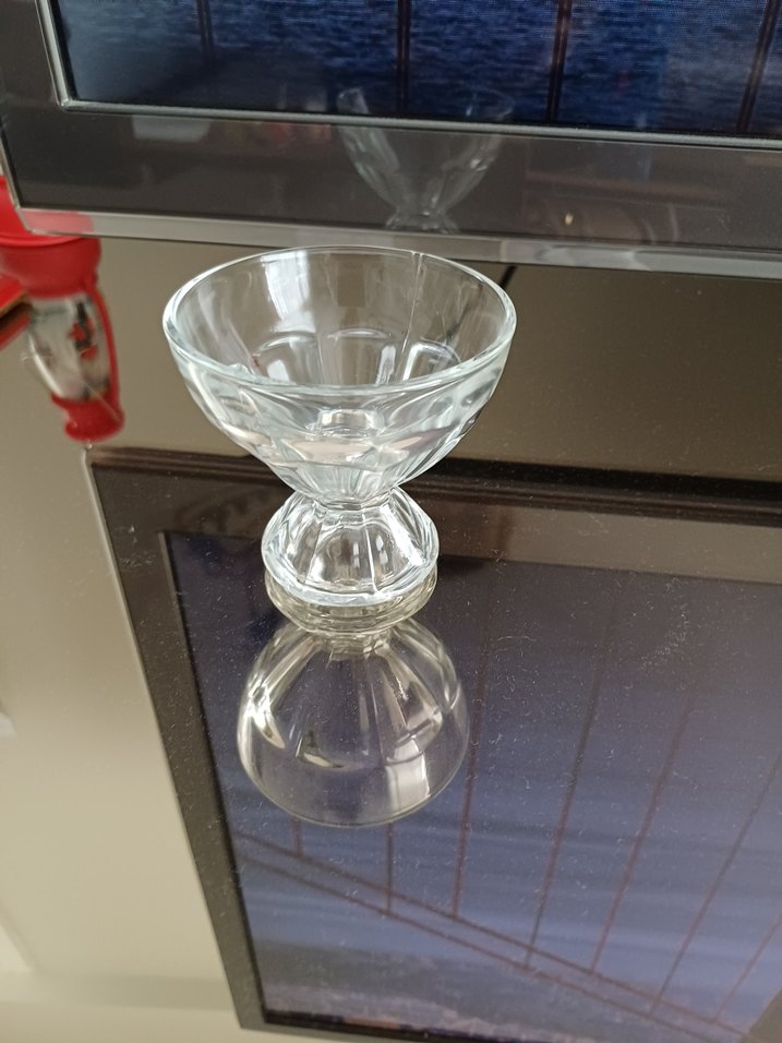 Parlak ve şeffaf ayaklı cam kase, tatlı veya atıştırmalıklar için uygundur.