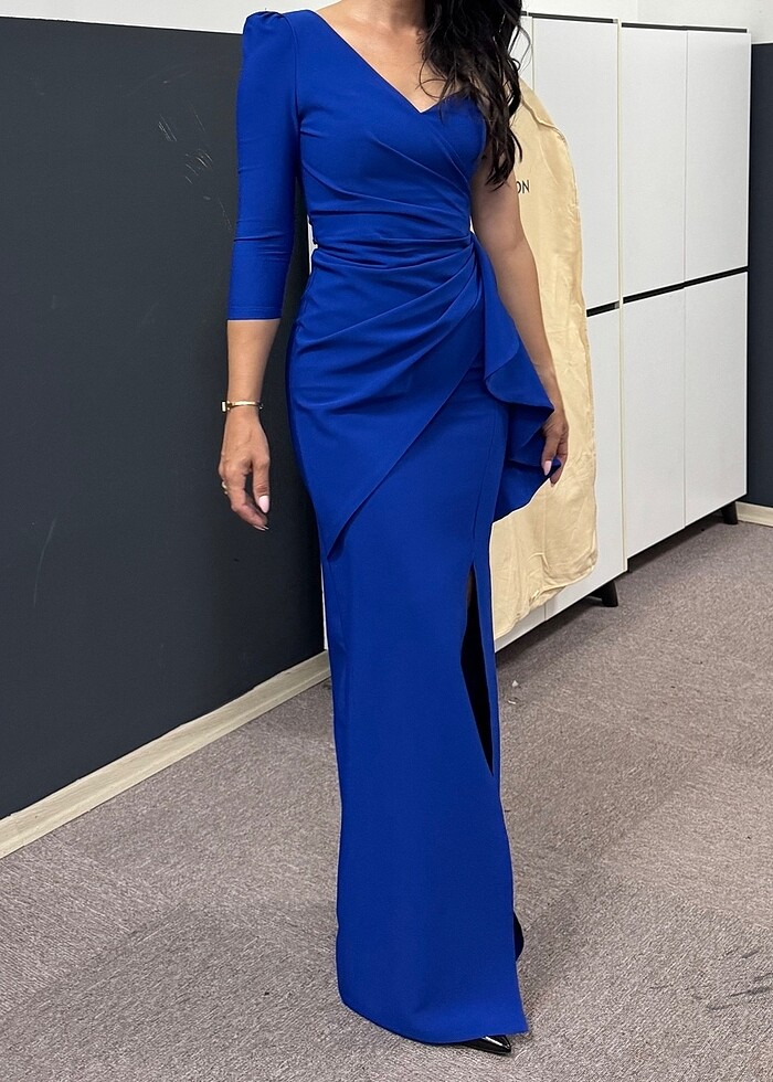 Bir kere kullanıldı. Yıkaması ütüsü yapıldı. Her tür davette rahatlıkla giyebilirsiniz. Hafif likralı. Fotoğraf 60 kg, 168 cm. Marka temsili
