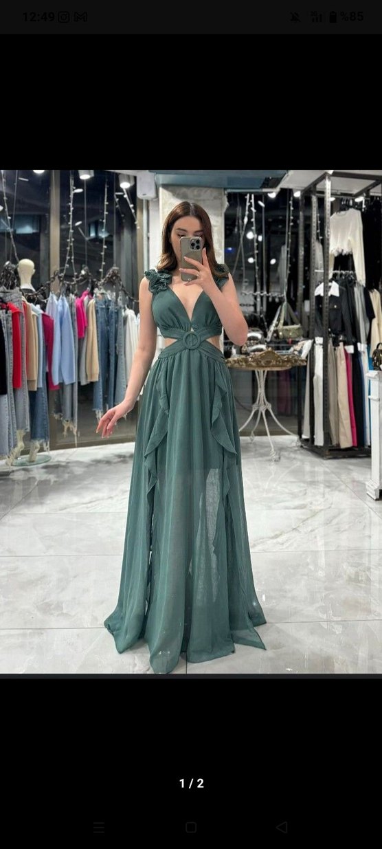 Şık Drapeli Uzun Kemerli Abiye Elbise