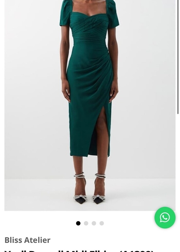 Elbise hiç giyilmedi, etiketlidir. L bendendir, m bedene de uyumlu olabilir geniş değil elbise. Elbesinin gögüs ön tarafında ki katlanan yer normalde görselde katlı, bana bu şekilde geldi bu yüzden fiyatı düşük tutuyorum, alan kişi isterse düzeltebilir orayı galiba.