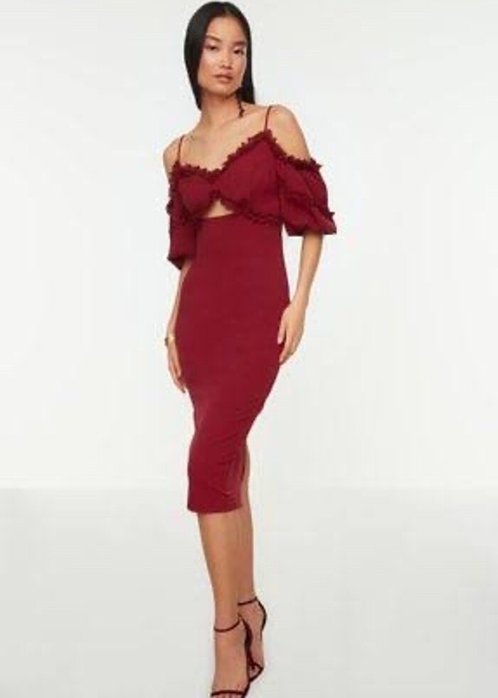 Mürdüm yaka detaylı elbise. 1 defa giydim.