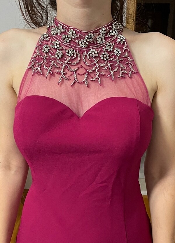 Elbise bir kez kullanıldı. Kırışıklık ütü ile giderilebilir. Temiz 38 beden fuşya renk elbise.Ütüsüz olması yanıltmasın sade ve şıklık arayanlar mesaj atabilir.