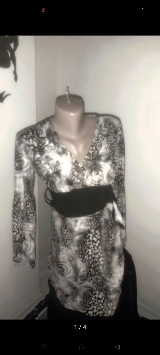 V yaka ve uzun kollu, batik desenli, modern avant-garde tarzda, standart kesim. Günlük kullanıma uygun. S-M bedene uygundur ama fermuar kısmı bozuk onun için fiyatı makul tuttum