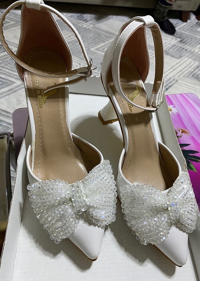 Şık fiyonklu nikah düğün topuklu ayakkabı