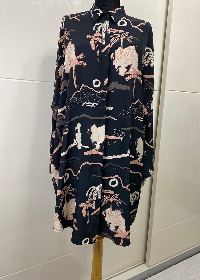 Ürün muhteşem bi kumaşa sahip dökümlü ve ütü gerektirmeyen bi kumaş 1,2 kez kulanılmış beden42 fakat bol kesim ve salaş 44 bedende çok rahat kulanabilir