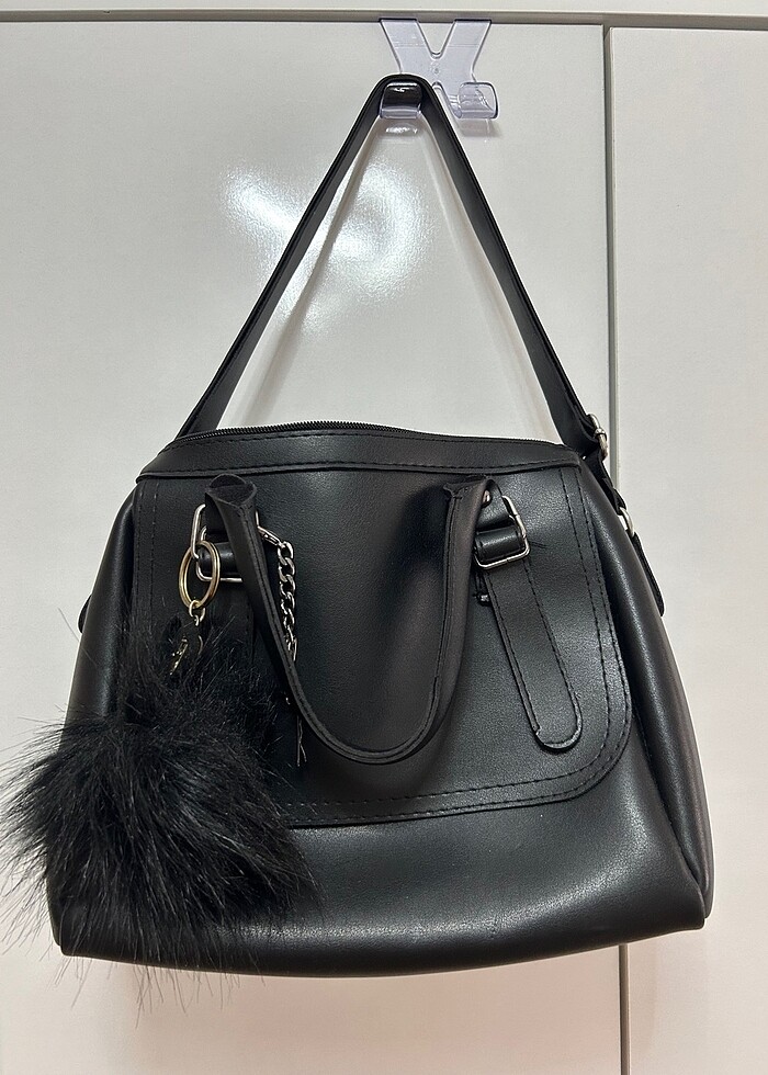 Şık / günlük siyah ponponlu çanta En 24 cm boy 22 cm taban boy 14 cm