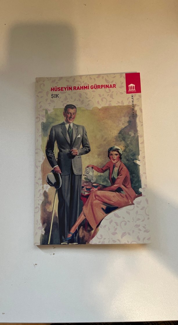 Hüseyin Rahmi Gürpınar'ın "Şık" romanı, klasik edebi tarzını yansıtan şık giyimli bir çiftin vintage kapak illüstrasyonuna sahip.