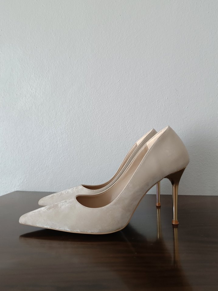 •39 Numara •Bej-Krem tonlarında •Topuğu Gold Renkte •Sivri Burun, İnce Stiletto •İç Topuk Boyu : 6 cm •Dış Topuk Boyu : 9 cm •Sadece 1 Kez Kullanıldı, Tertemiz, Yepyeni! •Ofis Şıklığı ve Özel Günler İçin Çok Şık, Zarif Bir Model