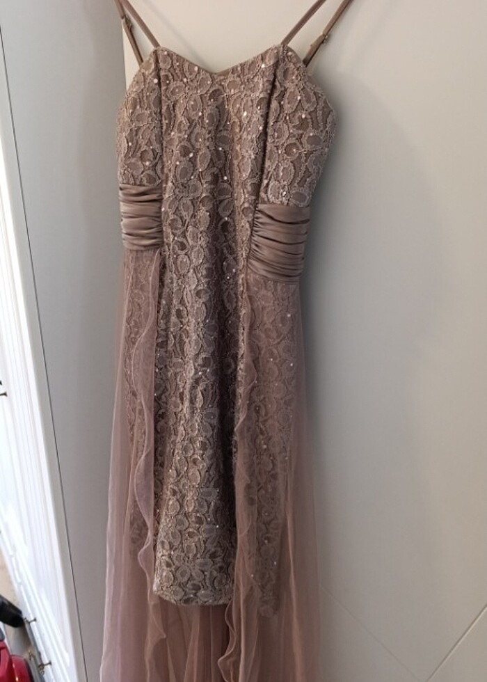 Kinada 1 kere giyildi.pudra rengi 40 beden. ancak dar kalıp.36-38 anca uyumlu. Marka baran giyim